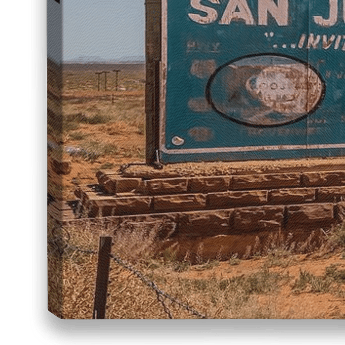 Bestelle dieses Landschafts-Wandbild MONUMENT VALLEY & Utah Schild von Melanie Viola als Reproduktion auf Leinwand, Alu-Dibond, als Poster, Fototapete oder Acrylglasbild.