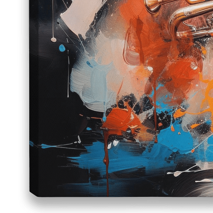 Was wäre die Welt ohne Musik? Entdecke eine Trompete in einem farbenfrohen abstrakten expressionistischen Stil. Fantastische dekorative Inszenierung mit kräftigen Farben. Das Motiv ist in Zusammenarbeit mit KI entstanden.