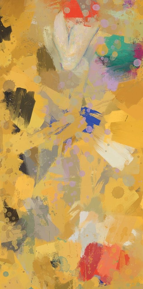 Bei diesem digitalen Kunstwerk bleiben die Farben und die Grundkomposition des Originals erhalten, aber die Wirkung ist abstrakt und expressionistisch. Die Figuren nehmen mit lockeren Pinselstrichen und -spritzern Gestalt an. Das Hauptaugenmerk liegt nun wirklich auf dem Kuss, der innigen Umarmung der beiden Personen in der Mitte des Bildes. Da das Gemälde viel schmaler ist als das Original, erhält es ein sehr individuelles Aussehen. Sehr schön für ein Treppenhaus oder eine kleine, schmale Wand.
