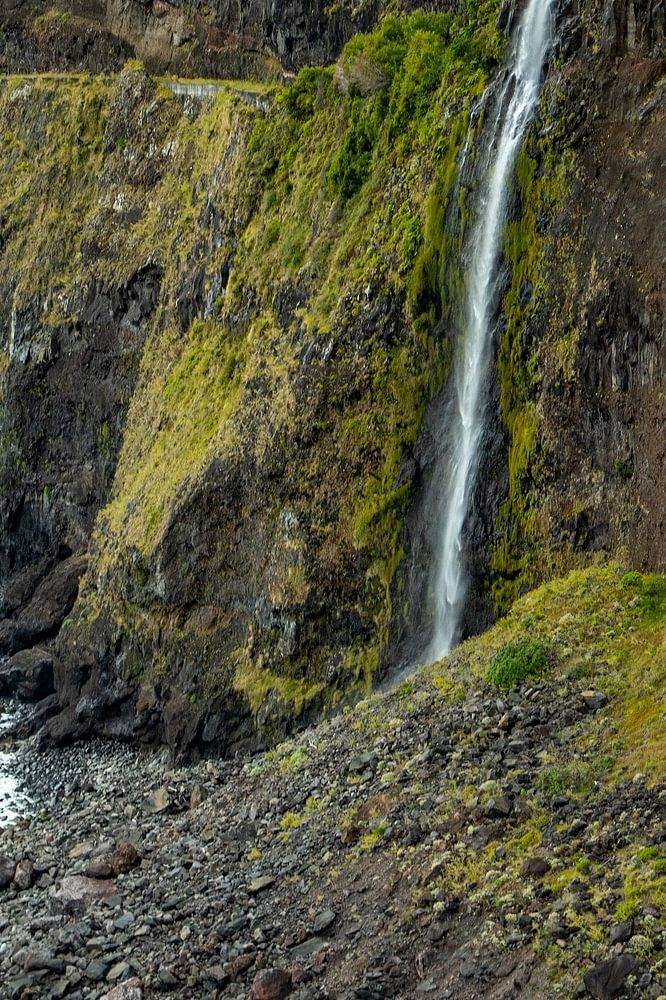 Madeira ist eine Insel Portugals und liegt im Atlantischen Ozean. Das Klima sorgt für eine wunderschöne Natur auf Madeira. Madeira ist auch als die Blumeninsel bekannt. Da Madeira mitten im Ozean liegt, sind die Küsten rau und voller Felsen. Darüber hinaus gibt es auf Madeira zahlreiche Wasserfälle, wie zum Beispiel diesen, der sich zum Meer hin öffnet.