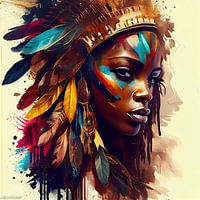 Bestelle dieses abstrakte Wandbild Mächtige afrikanische Kriegerin #5 von Chromatic Fusion Studio als Kunstdruck auf Leinwand, Alu-Dibond, als Poster, Fototapete oder Acrylglasbild.