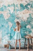 Über „Mädchen auf Weltkarte - Verträumte Straßenmalerei“ von BowiScapes – Kunst und urbane Wandgestaltung