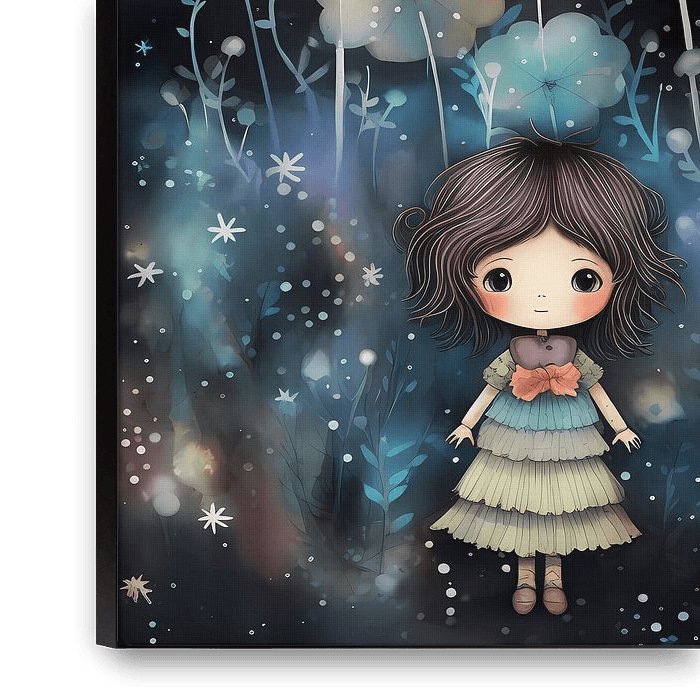 Aquarell riesige Blumen in der Nacht mit einem niedlichen Mädchen