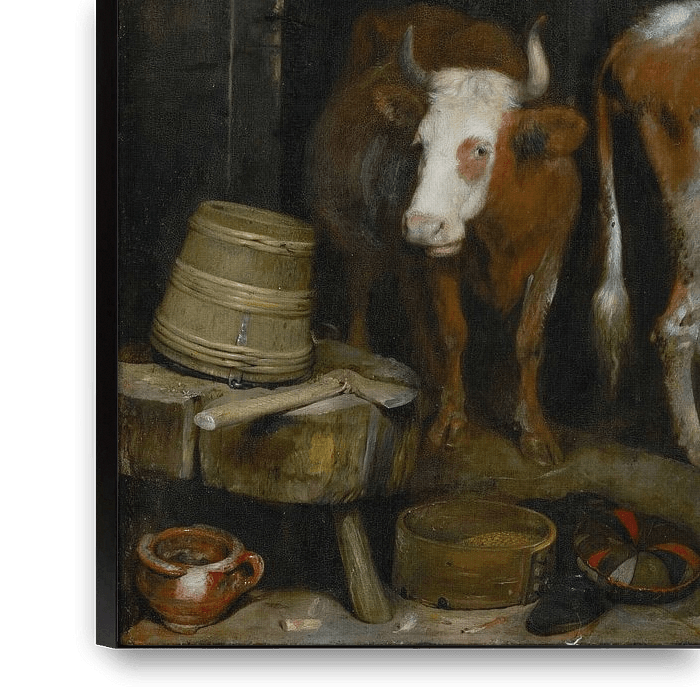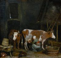 Mädchen, das eine Kuh in einem Stall melkt, von Gerard ter Borch, einem niederländischen Maler (1617-1681) aus den Jahren 1652 und 1654