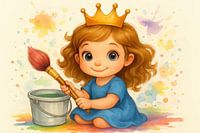 Bestelle das digitale Kunst Bild Mädchen mit Krone und Pinsel von Imperial Art House als Kunstdruck auf Leinwand, Alu-Dibond, als Poster, Fototapete oder Acrylglasbild.