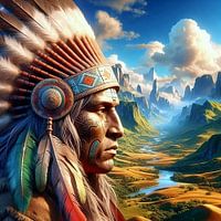 Bestelle das digitale Kunst Bild Männlich einheimisch Nordamerika 3 von Yvonne van Huizen als Reproduktion auf Leinwand, Alu-Dibond, als Poster, Fototapete oder Acrylglasbild.