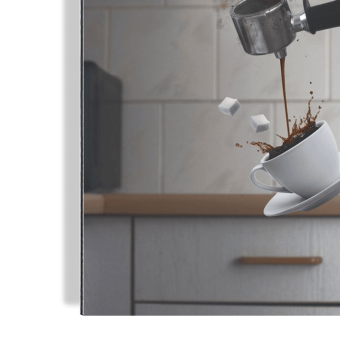 Dieses Schwebebild einer Tasse Kaffee in der Entstehung ist eine bezaubernde und stimmungsvolle Ergänzung für jeden Raum. Es weckt ein Gefühl des Staunens und der Freude und lädt den Betrachter ein, sich von der Magie des Augenblicks mitreißen zu lassen. Holen Sie sich die magische Erfahrung einer perfekten Tasse Kaffee in Ihr Zuhause und lassen Sie dieses einzigartige Bild Ihren Raum beleben.