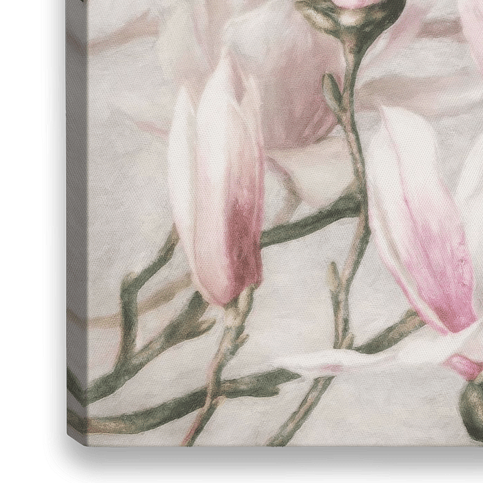 Gemälde in zartrosa Tönen mit Magnolienblüten. Gemischte Medien auf Leinen