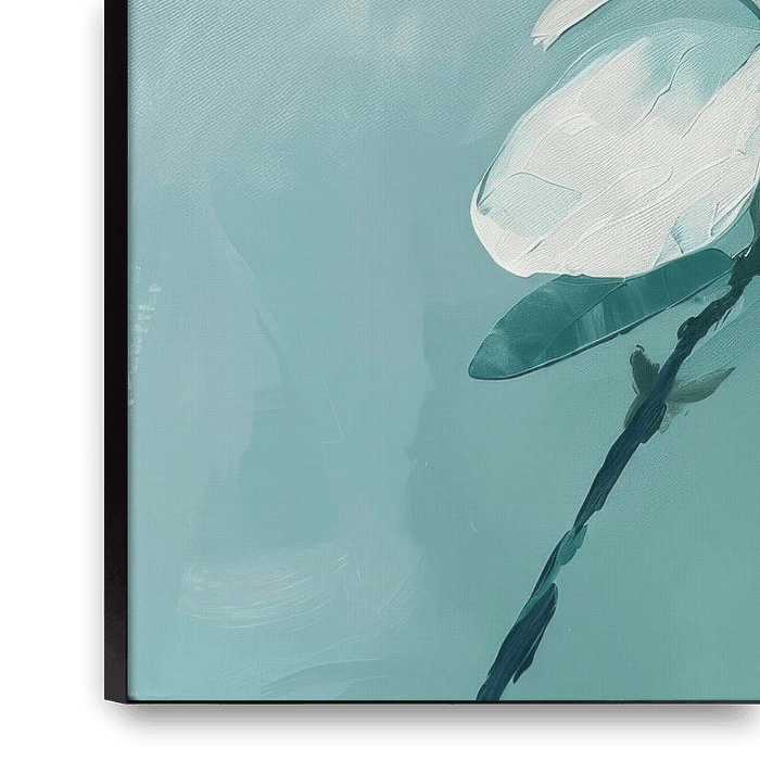 Ihre gewählte Kunst auf Leinwand, gespannt in einem Aluminiumrahmen. Schnell und einfach austauschbar für eine frische Ausstrahlung und ganz nach Ihren Wünschen.