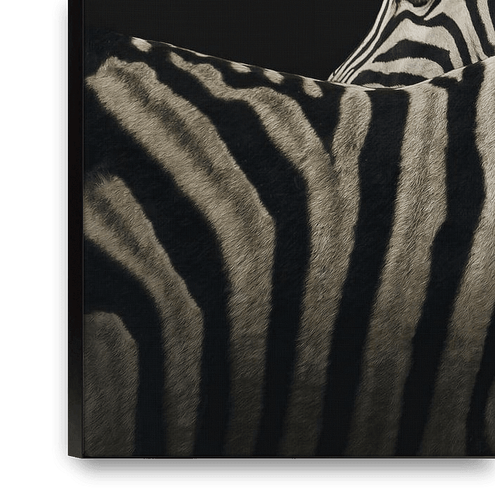 Bestelle dieses Porträt Majestätische Zebras vor schwarzem Hintergrund - Beeindruckende Tierfotografie von Elianne van Turennout als Reproduktion auf Leinwand, Alu-Dibond, als Poster, Fototapete oder Acrylglasbild.