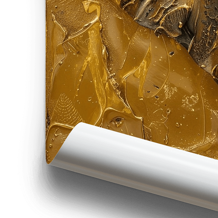 Dieses atemberaubende Porträt eines Elefanten ist in satten Goldtönen gehalten und weist eine auffällige Textur auf, die ihm Tiefe und Details verleiht. Die imposanten Stoßzähne und die kraftvollen Linien des Gesichts werden durch die glänzende, raue Oberfläche des Hintergrunds hervorgehoben. Die geprägten Ohren und die feinen Details der Haut vermitteln ein Gefühl von Kraft und Würde. Dieses Kunstwerk ist ideal für Liebhaber der Tierkunst und für Innenräume, die einen luxuriösen und zeitlosen Look suchen.