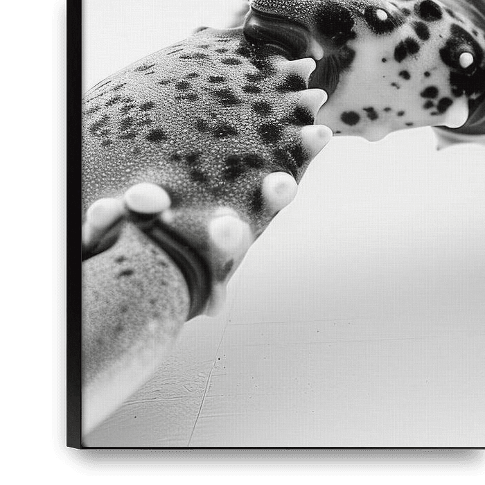 Diese beeindruckende Makroaufnahme in Schwarz-Weiß zeigt einen Hummer in außergewöhnlicher Detailtreue. Die minimalistische Komposition und die klaren Kontraste betonen die komplexe Struktur der Schale, die feinen Antennen und die kräftigen Scheren. Ideal für Liebhaber der Meeresfotografie und der Natur, bringt dieses Kunstwerk die…