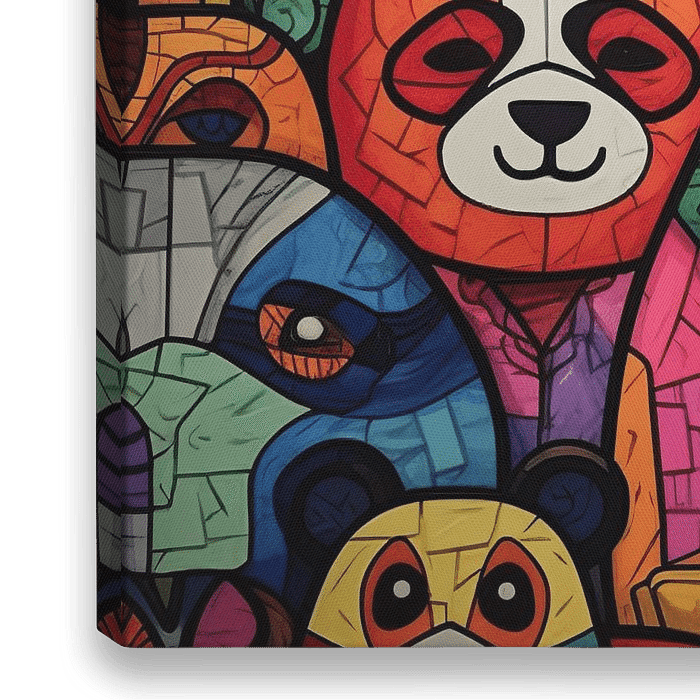 Details: Panda, bunt, abstrakt, Tiere, fröhlich, Mosaik, Kunst, Dekoration, zeitgenössisch, Galerie