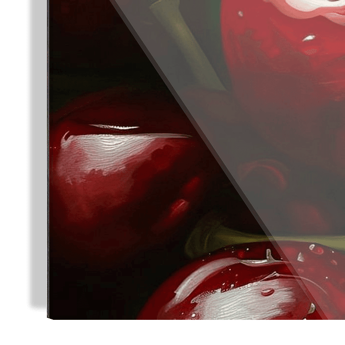 Details: Kirschen, Obst, Realismus, rot, grün, schwarz, Kunst, Leinwand, dekorativ, Wassertropfen