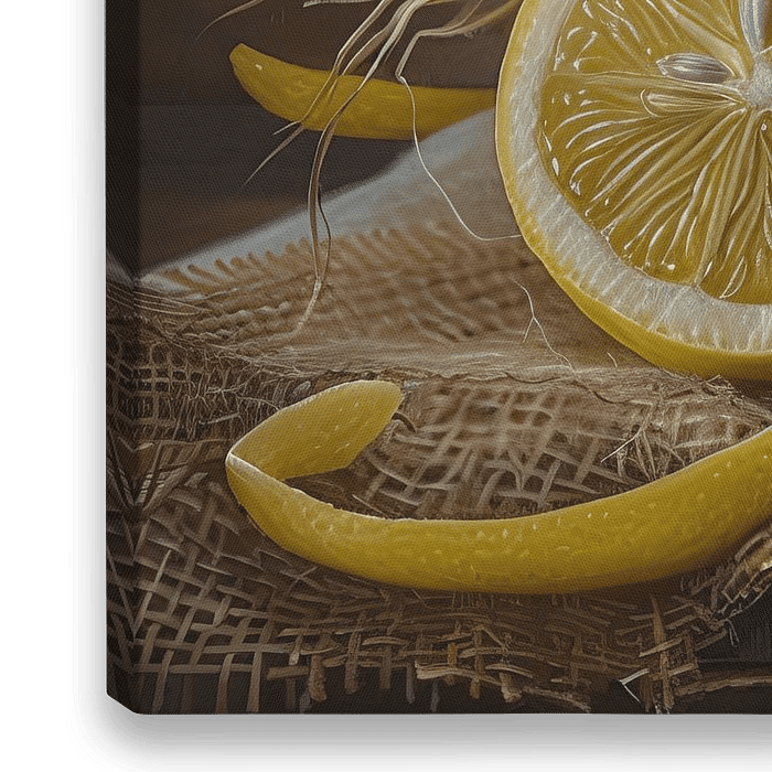 Details: Zitrone, Obst, Malerei, Kunst, Scheibe, gelb, grün, braun, Leinwand, natürlich