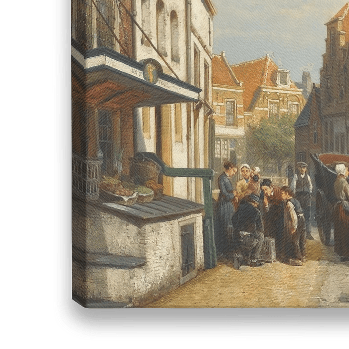 Bestelle Malerei der Wijdstraat in Oudewater im Sommer, Cornelis Springer als Reproduktion auf Leinwand, Alu-Dibond, als Poster, Fototapete oder Acrylglasbild.