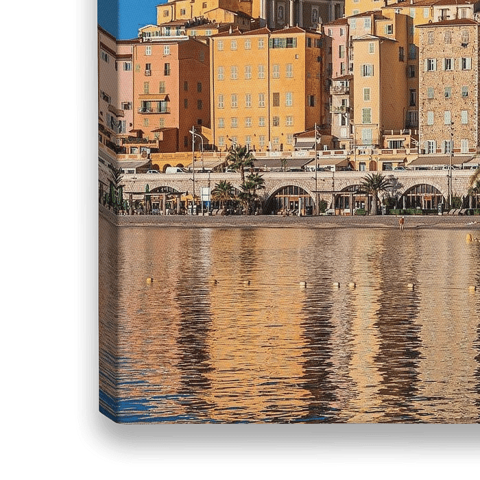 FOTOGRAFIE Malerische, bunte Wohnhäuser in der Altstadt von Menton an der Côte d'Azur, Mittelmeer, Frankreich