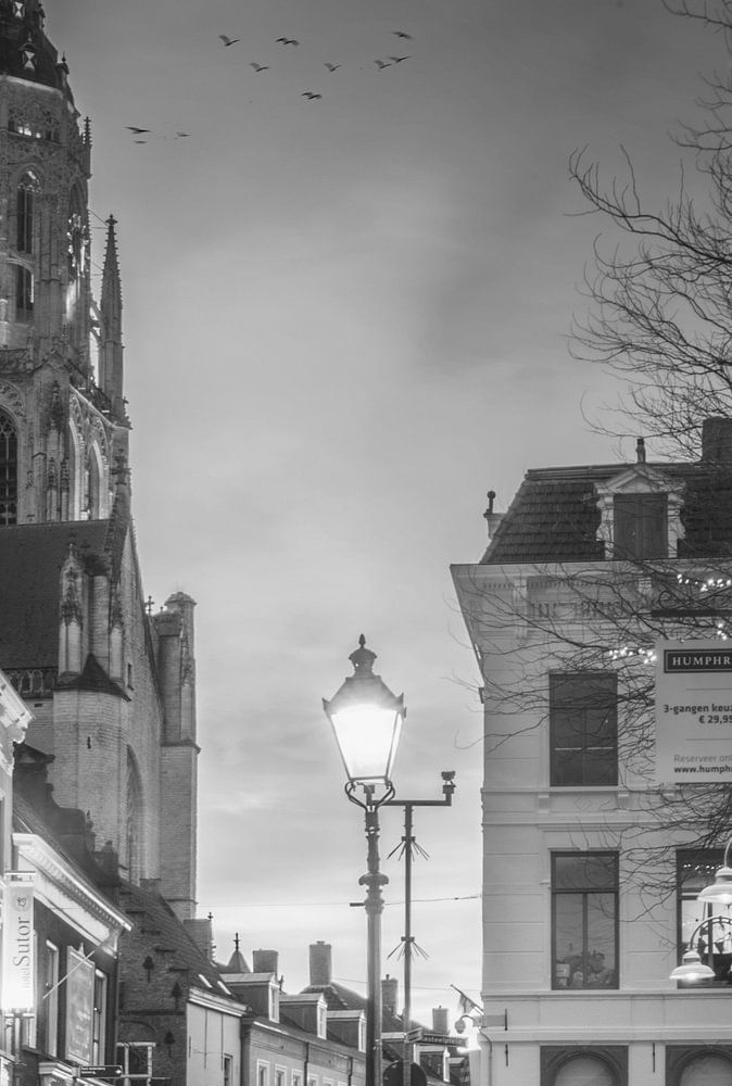 Die schöne Catharinastraat sah bei diesem magischen Sonnenuntergang noch prächtiger aus, und die Große Kirche immer im Blick. Eine verträumte Atmosphäre.