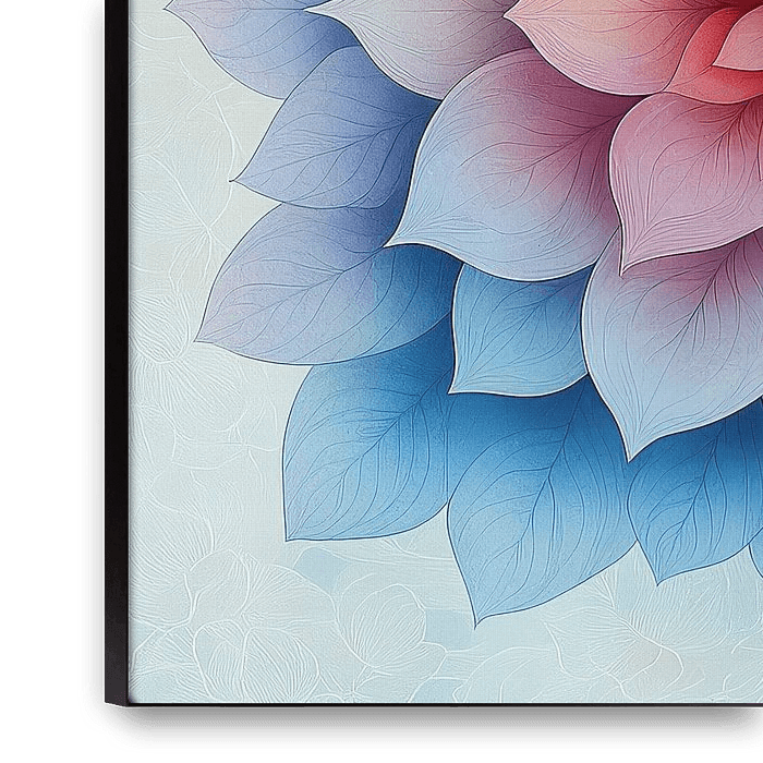 Ihre gewählte Kunst auf Leinwand, gespannt in einem Aluminiumrahmen. Schnell und einfach austauschbar für eine frische Ausstrahlung und ganz nach Ihren Wünschen.
