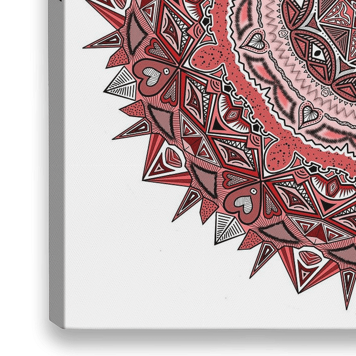 Bestelle das digitale Kunst Bild Mandala in Rottönen von Andie Daleboudt als Reproduktion auf Leinwand, Alu-Dibond, als Poster, Fototapete oder Acrylglasbild.