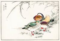Mandarin-Ente und Perlgraupen-Illustration von Numata Kashu (1838-1901).