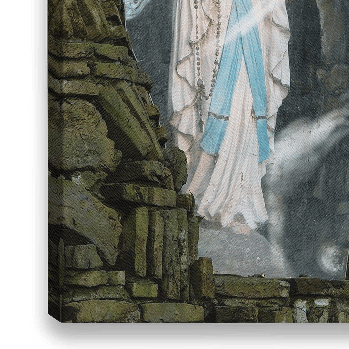 Lourdes-Grotte in Nieuwveen. Marienstatue in den letzten Sonnenstrahlen des Tages.
