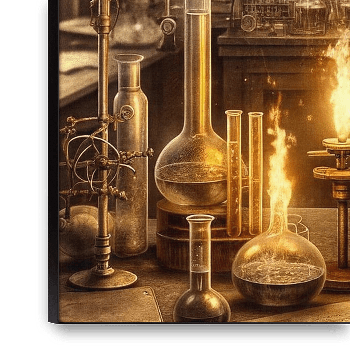 Das Bild ist eine eindrucksvolle Darstellung von Marie Curie, einer der bedeutendsten Wissenschaftlerinnen der Geschichte, umgeben von den Instrumenten ihrer Forschung. Ihre Gestalt steht im Zentrum, ihr Blick konzentriert und durchdringend, während sie von verschiedenen wissenschaftlichen Apparaturen umgeben ist. Im Hintergrund ist…