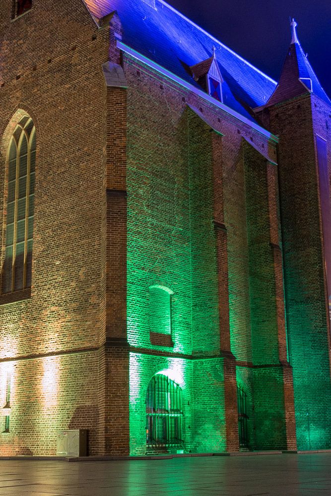 Die Marienburgkapelle in Nimwegen bei Nacht. Wunderschön ausgeleuchtet mit farbigen Lampen.