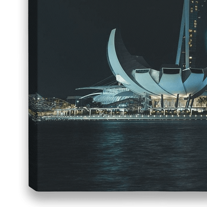 Bestelle dieses abstrakte Wandbild Marina Bay Sands von vdlvisuals.com als Reproduktion auf Leinwand, Alu-Dibond, als Poster, Fototapete oder Acrylglasbild.