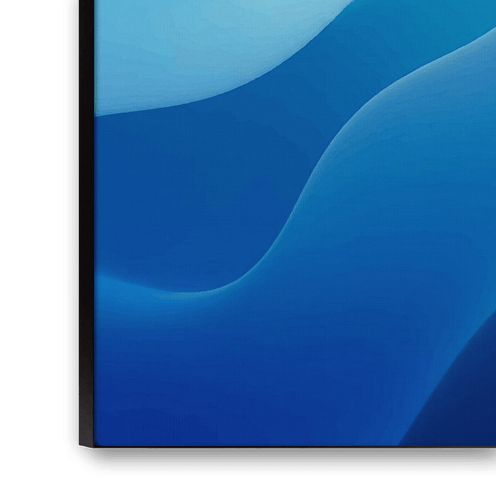 Eine fließende, abstrakte Mischung aus Türkis- und Tiefblautönen, inspiriert vom natürlichen Rhythmus des Meeres. Beruhigend und modern.