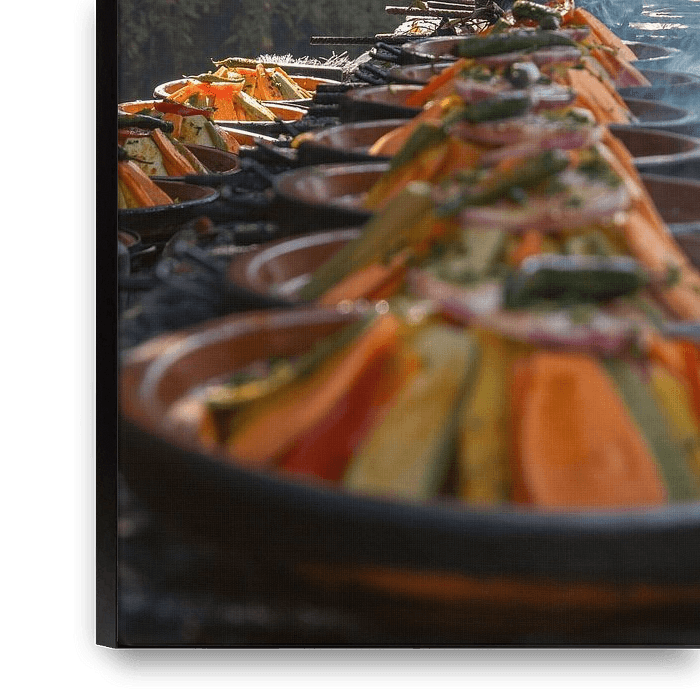 Köstliche Tajine, ein Eintopf aus Steingut, wird in Akchour, Marokko, serviert. Das Naturschutzgebiet liegt im Rif-Gebirge und ist Teil des Nationalparks Talassemtane.