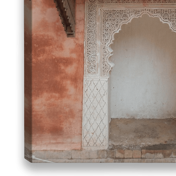 Rosa Wände in Marrakesch, Marokko. Die Pastellfarben passen perfekt zu den heutigen Trendfarben. Stellen Sie sich vor, Sie wären in der marokkanischen Medina von Marrakesch!
