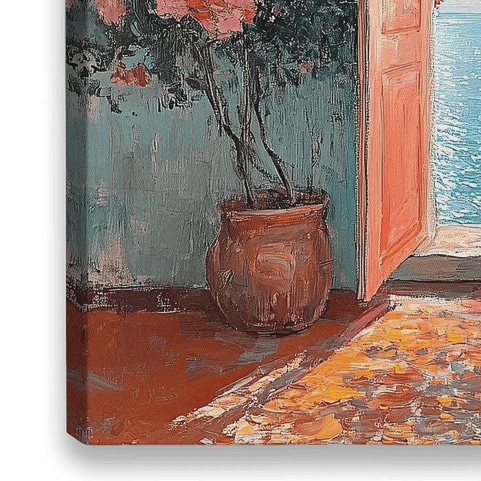 Bestelle diese Malerei Matisse inspiriert Open Window Meer von Niklas Maximilian als Reproduktion auf Leinwand, Alu-Dibond, als Poster, Fototapete oder Acrylglasbild.