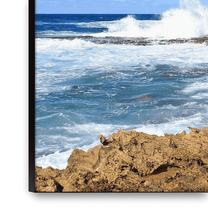 Ihre gewählte Kunst auf Leinwand, gespannt in einem Aluminiumrahmen. Schnell und einfach austauschbar für eine frische Ausstrahlung und ganz nach Ihren Wünschen.