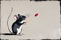 Dieses einzigartige Kunstwerk kombiniert das verspielte Bild einer Maus mit einem großen Streichholz und ist in einem minimalistischen Stil gestaltet, der perfekt zu modernen Innenräumen passt. Die Einfachheit der Komposition, kombiniert mit starken Kontrasten in Schwarz, Weiß und Rot, macht es zu einem echten Blickfang. Das an die…