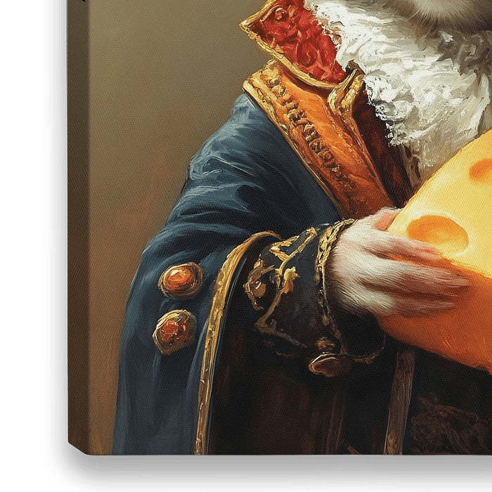 Bestelle dieses Porträt Mausporträt mit Käse von But First Framing als Reproduktion auf Leinwand, Alu-Dibond, als Poster, Fototapete oder Acrylglasbild.
