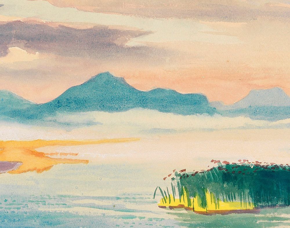 Max Pechstein’s Chiemsee-Ufer (1947) toont een expressieve, kleurrijke interpretatie van het Beierse merenlandschap, waarin emotie en natuurbeleving centraal staan. Hij gebruikte krachtige penseelstreken en felle kleuren om zijn innerlijke ervaring van het landschap uit te drukken, typisch voor het expressionisme.