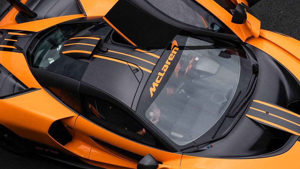 Wir sind große Fans von diesem Bild, dem neuen Hypercar McLaren Senna GTR Orange Carbon. Der Fahrer steigt gerade ein, um mit Vollgas auf den Circuit Assen zu fahren. Wunderschöne Action-Aufnahme, bei der die Tür aus einer besonderen Perspektive noch offen ist.