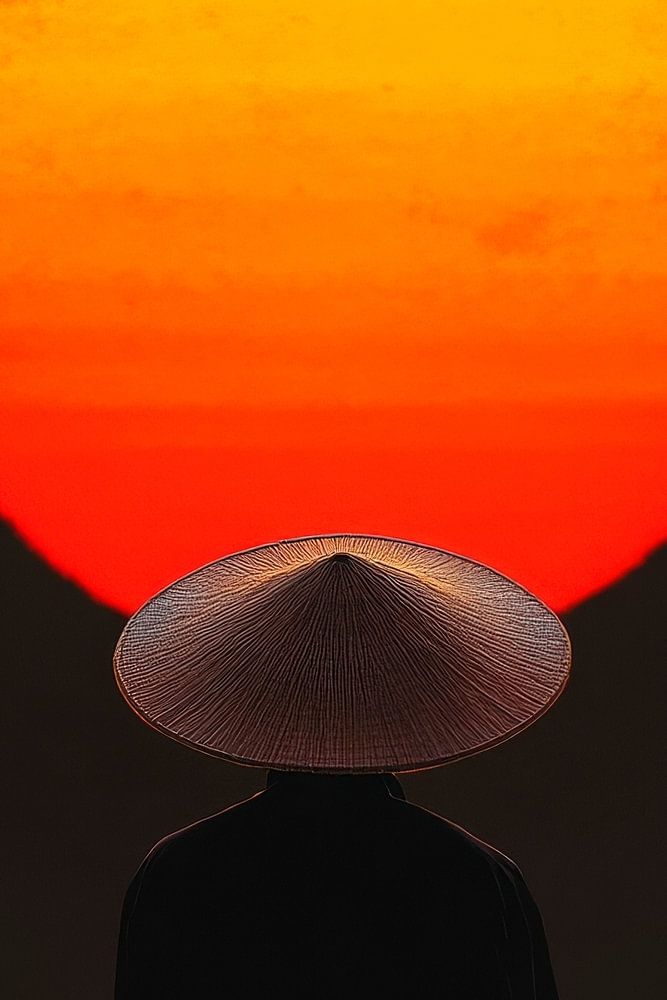 Stille und Harmonie verschmelzen in diesem Bild, wo ein meditierender Mensch vor einem majestätischen Sonnenuntergang sitzt. Die leuchtenden Orangetöne des Himmels strahlen Wärme und Ruhe aus, während der schwarze Umriss des Betrachters eine tiefe Anziehungskraft entfaltet. Ideal für das Wohnzimmer, schafft es eine Atmosphäre der Entspannung und Besinnung.