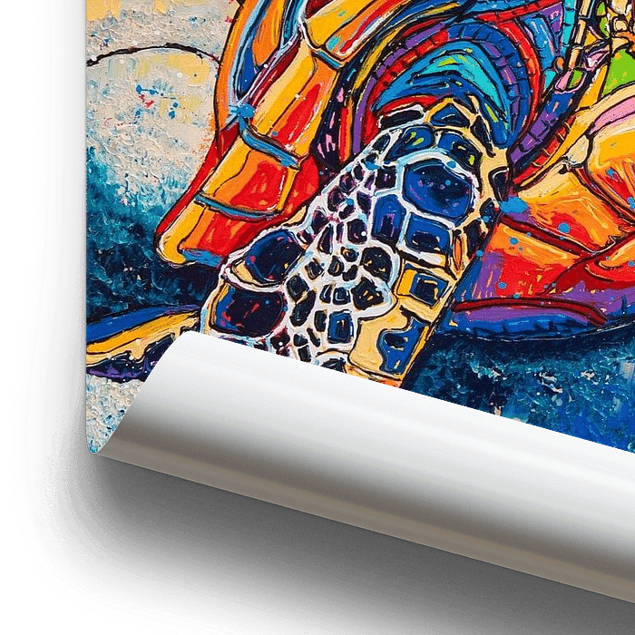 Zwei farbenfrohe Schildkröten liegen eng aneinander geschmiegt auf dem Meeresgrund, umgeben von Korallen und dem klaren blauen Wasser der Karibik. Dieses Gemälde strahlt Verbundenheit, Frieden und Zärtlichkeit aus. Die intensiven Farben und der ausdrucksstarke Stil machen es zu einem beeindruckenden Kunstwerk, das den Betrachter nicht…