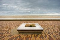Der Zeedijk in der belgischen Stadt Wenduine ist ein bunter Ort. Nicht nur durch die Verwendung von Steinen, sondern auch durch andere Gegenstände wie Bänke, Laternenpfähle oder, wie hier, einen Blumenkasten. Das Ganze hat einen eleganten, modernen Look.