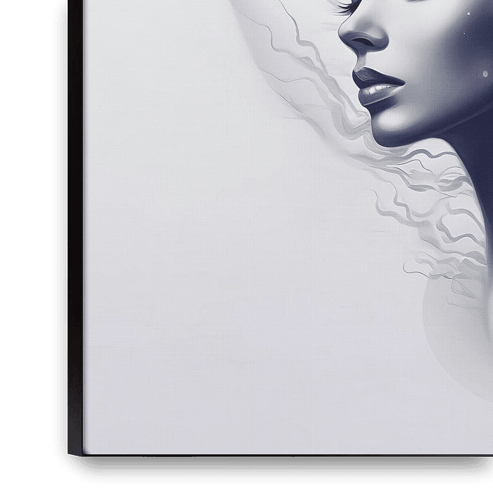 Ihre gewählte Kunst auf Leinwand, gespannt in einem Aluminiumrahmen. Schnell und einfach austauschbar für eine frische Ausstrahlung und ganz nach Ihren Wünschen.