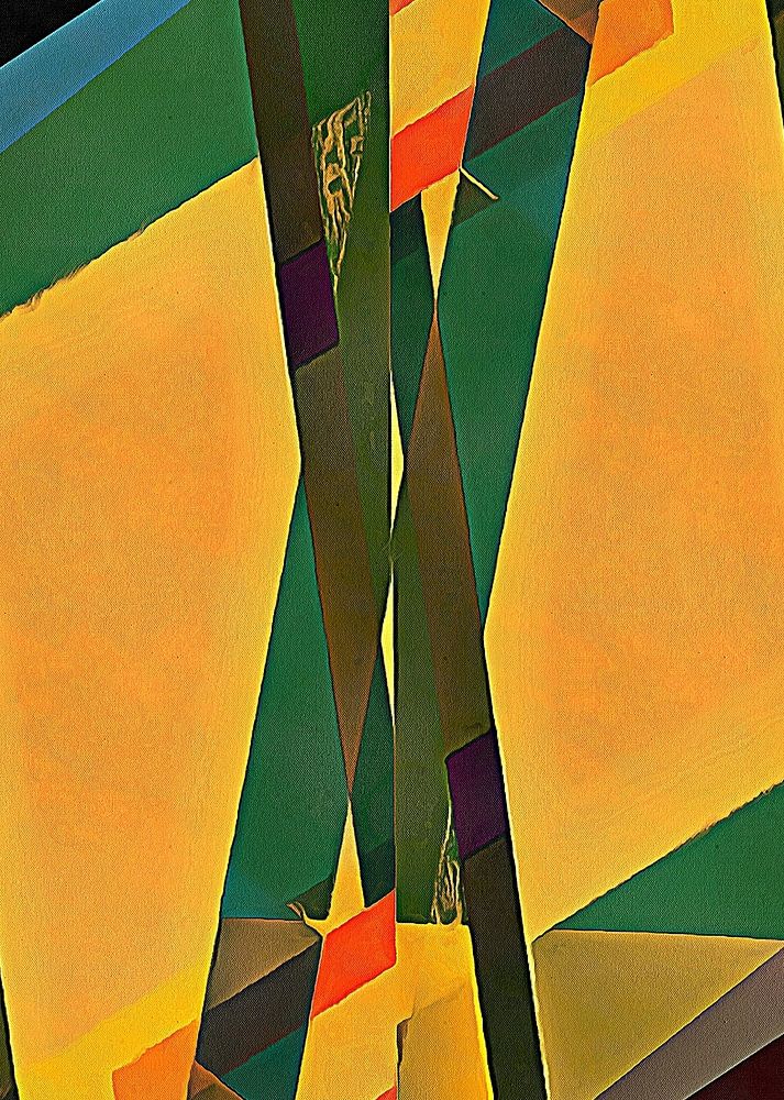 Durch ein Prismenkristall betrachtet, begannen die Oberflächen der Farben zu fragmentieren und in sich überlappende Abschnitte aufzubrechen.