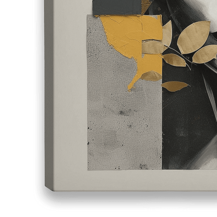 Das Kunstwerk ist eine fesselnde Mischung aus Collage und Malerei, bei der das Porträt einer Frau durch eine Schichtung von Texturen und Materialien entsteht. Die goldenen und schwarzen Flächen verleihen dem Bild eine reiche Textur und vermitteln ein Gefühl von Luxus.