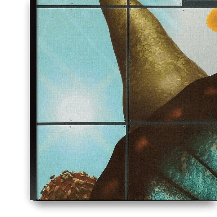 Ihre gewählte Kunst auf Leinwand, gespannt in einem Aluminiumrahmen. Schnell und einfach austauschbar für eine frische Ausstrahlung und ganz nach Ihren Wünschen.