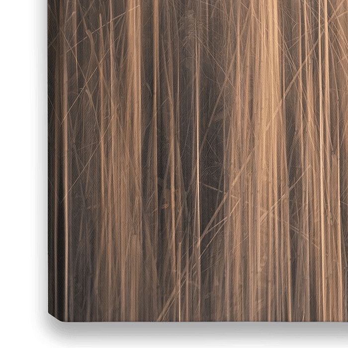 Nahaufnahme von echtem Schilf, das entlang eines Baches wächst. Hier wurde ICM, d. h. absichtliche Kamerabewegungen, eingesetzt, wodurch die Szene abstrakt und dynamisch wurde.