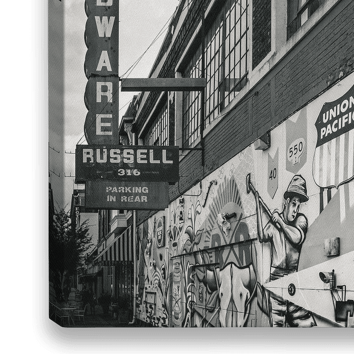 Bestelle dieses moderne Wandbild Memphis Straßenbild von VanEis Fotografie als Reproduktion auf Leinwand, Alu-Dibond, als Poster, Fototapete oder Acrylglasbild.