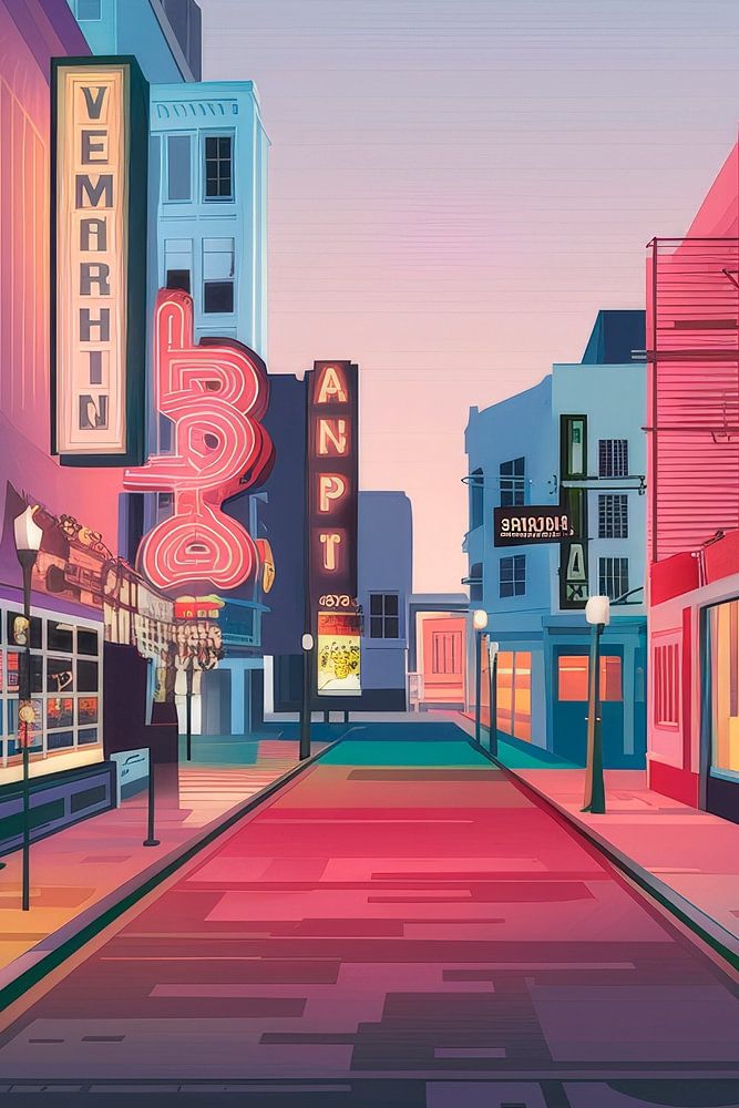 Ein urbanes Märchen entfaltet sich in sanften Pastelltönen, wo die Straßen von Memphis lebendig werden. Neonlichter erstrahlen und laden zum Träumen ein, während nostalgische Gebäude Geschichten flüstern. Diese charmante Szene ist perfekt für ein Wohnzimmer, um Gespräche zu inspirieren und ein Gefühl von Abenteuer zu verbreiten.