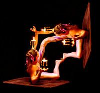 Bestelle das Foto Menschlicher Kerzenständer reflektiert von Greta Lipman als Reproduktion auf Leinwand, Alu-Dibond, als Poster, Fototapete oder Acrylglasbild.