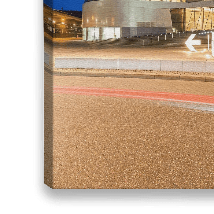Das Mercedes-Benz Museum in Stuttgart, entworfen vom Architekturbüro UNStudio, bei Nacht.